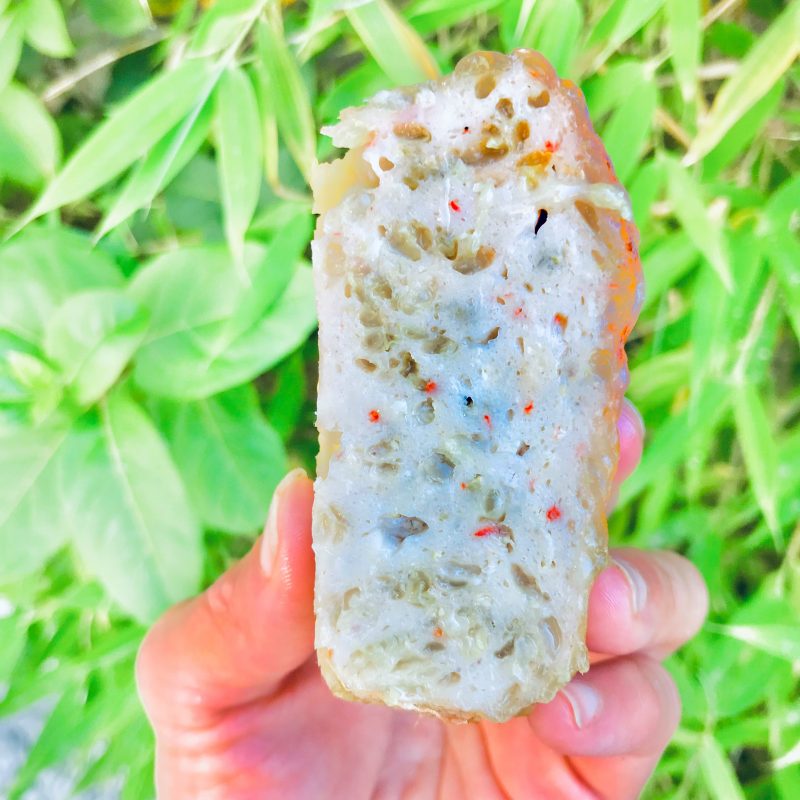 Riz Cantonais aux deux facettes, riz parfumé et riz Nérone au goût de myrtille avec des petits légumes de saison. Le tout est légèrement grillé à l’huile de sésame. Chả Lụa est le Pâté de porc fermier aux cinq épices, réalisé à partir du filet de porc chez les Rougon à la ferme des Pelissonnes.